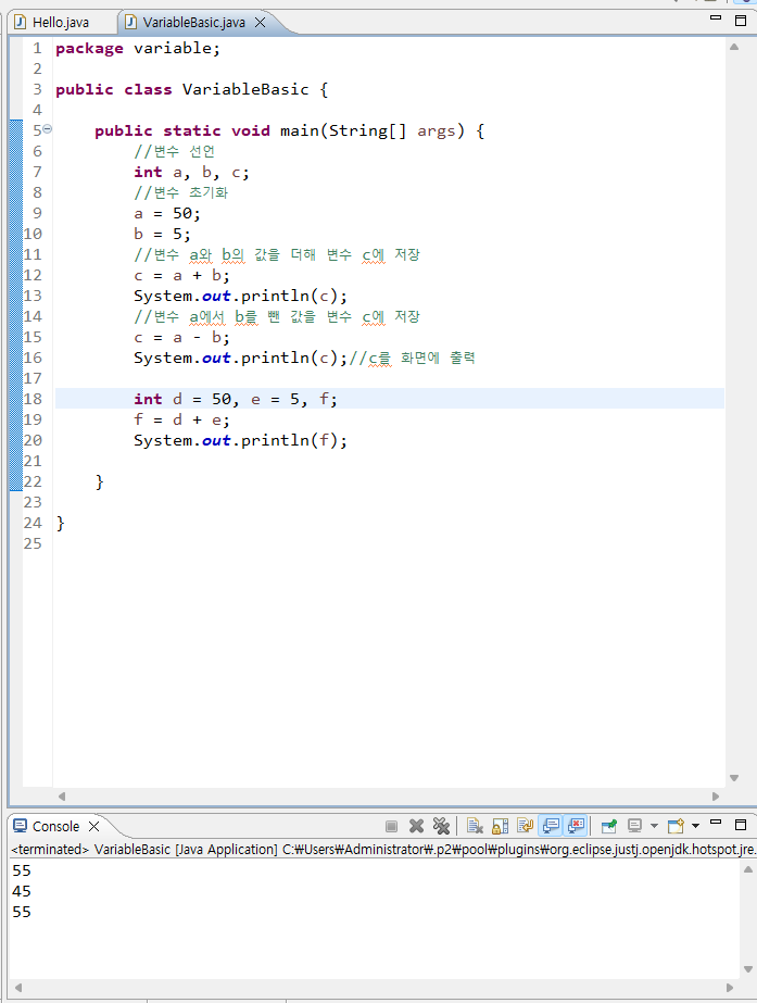 number2 = 50; //변수 이름 : number2 , 값 : 50