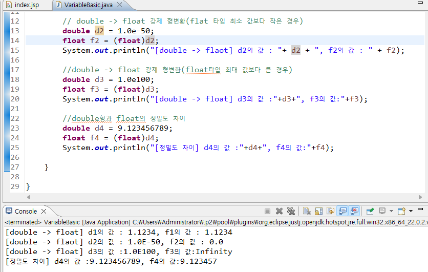 - 실수형 간의 형변환